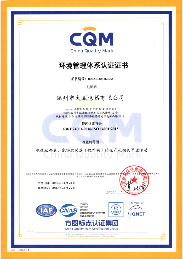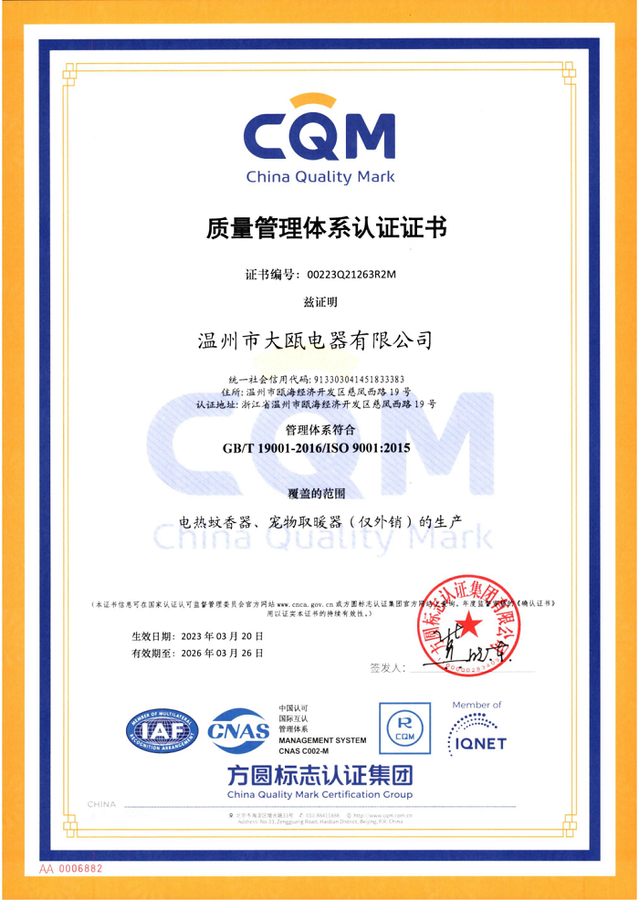 溫州市大甌電器有限公司(以下簡稱大甌公司)是集研發(fā)、制造為一體的日化電器專業生產制造商。 秉承“以人為本,以質取勝”的經營理念,三十余載櫛風沐雨,踐行“成就客戶、價值為本、誠信務實、追求卓越”的核心價值觀。大甌公司堅持以產研一體化的經營模式與差異化的競爭戰(zhàn)略為基點,持續(xù)推出細分市場上的多種類產品,豐富產品矩陣,滿足消費者多樣化需求,助力新型驅蚊行業高速發(fā)展。